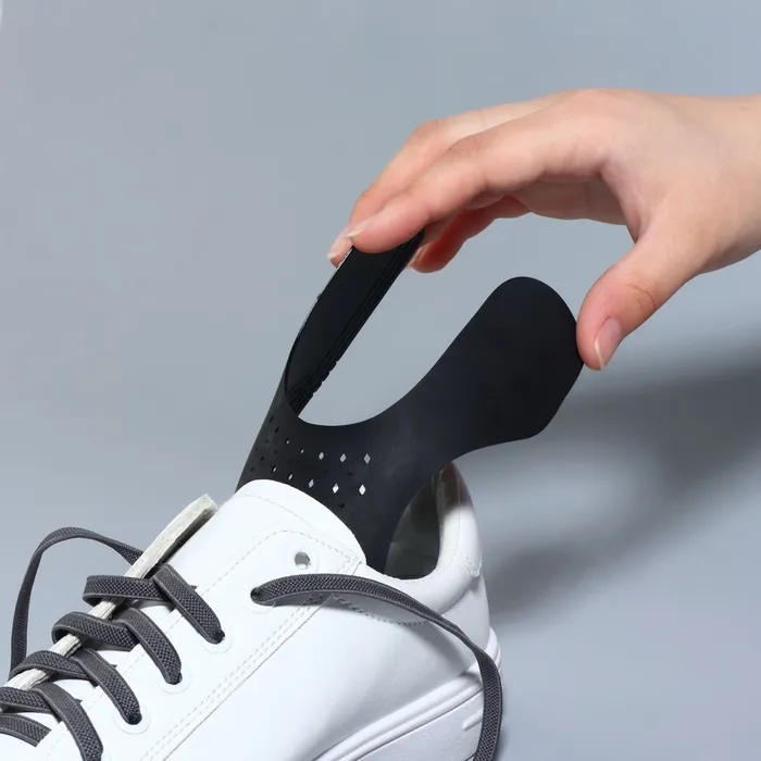 Специальный формодержатель для хранения не даст материалу помяться, разгладит заломы и существенно продлит срок службы сапог, ботинок и туфель.