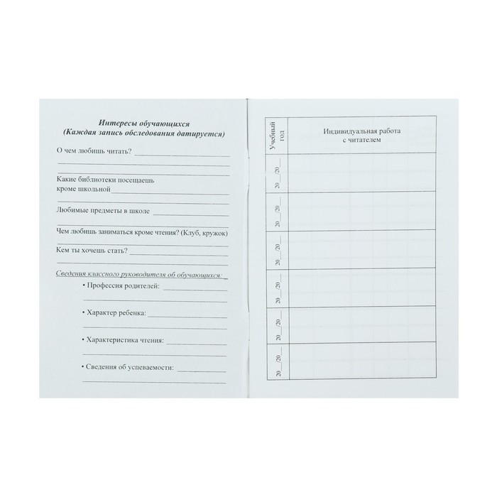 Формуляр читателя школьной библиотеки А6, 8 листов, офсет 80 г/м²