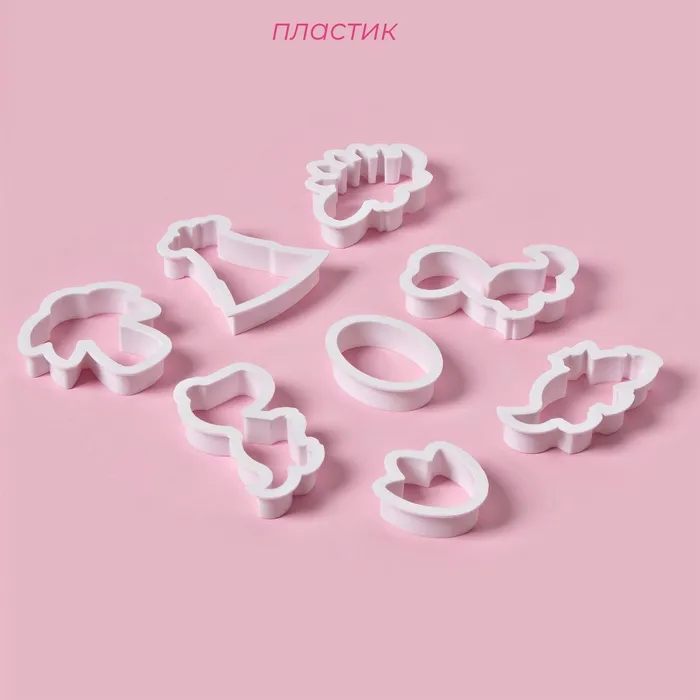Формы для печенья Доляна «Хищные динозавры», набор 8 шт., пластик, белые — Характеристики