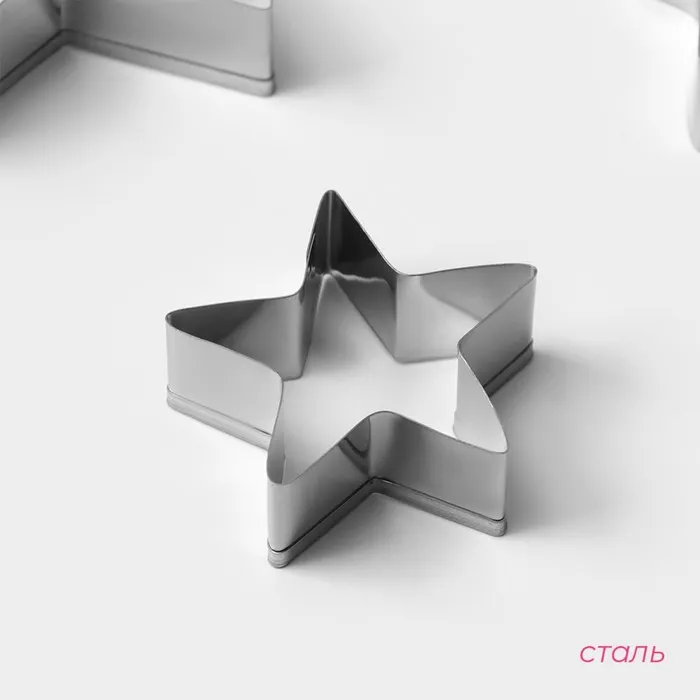 Формы для печенья Доляна «Остроконечная звезда», набор 3 шт., металл, серебристые — Характеристики