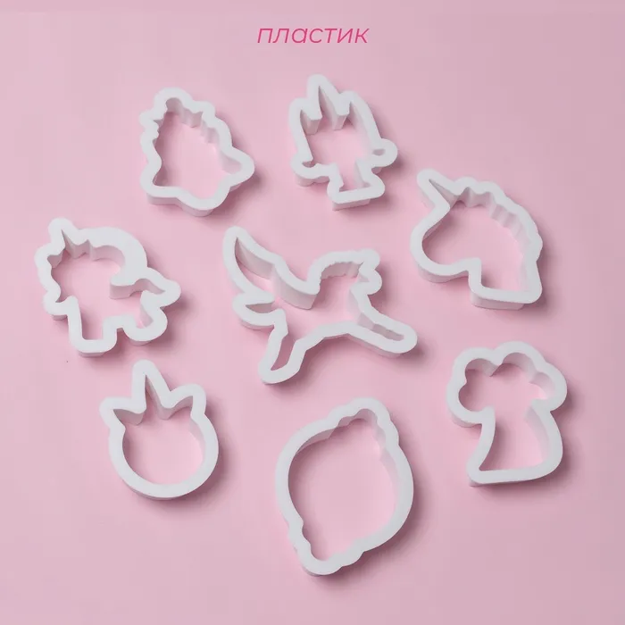 Формы для печенья Доляна «Праздник единорога», набор 8 предметов, 9×6×1.5 см, пластик, белые — Характеристики