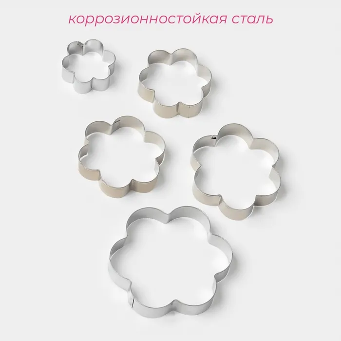 Формы для печенья Доляна «Ромашка», набор 5 шт., 7.8×7.8 см, металл, серебристые — Характеристики