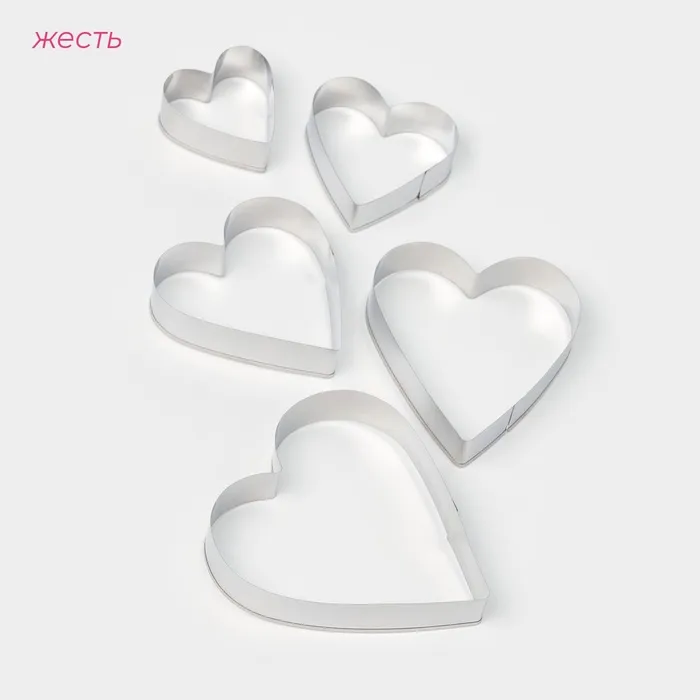 Формы для печенья Доляна «Сердечко», набор 5 шт., 7.5×7.4 см, металл, серебристые — Характеристики