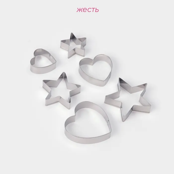 Формы для печенья Доляна «Сердце, звёздочка», набор 6 шт., 7×13×1.5 см, металл, серебристые — Характеристики