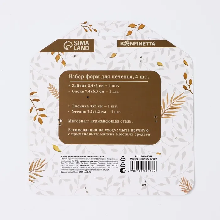 Формы для печенья «Милашки», 4 шт. — Характеристики
