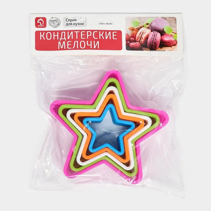 Формы для печенья новогодние Доляна «Звезда», набор 5 шт., пластик, МИКС — Характеристики