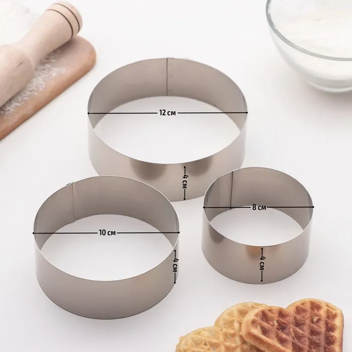 Формы для выкладки и выпечки KONFINETTA «Круг», набор 3 шт., d=8 см, d=10 см, d=12 см, нержавеющая сталь, серебристый — Характеристики