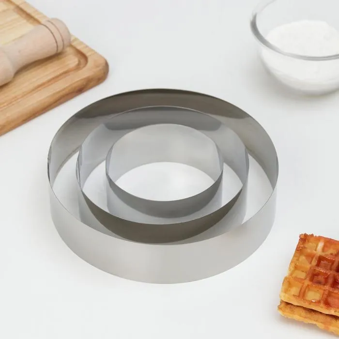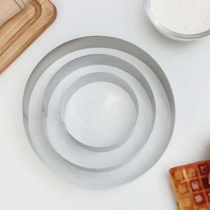 Формы для выкладки и выпечки «Круг», набор 3 шт., d=10, 15, 20 см, высота 4.5 см, нержавеющая сталь, серебристый — Характеристики