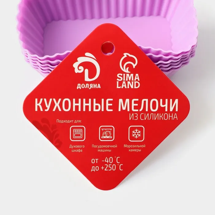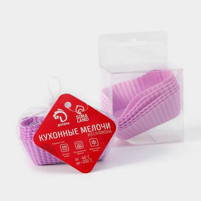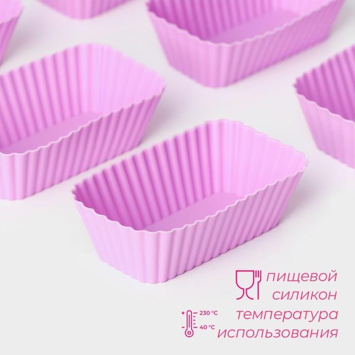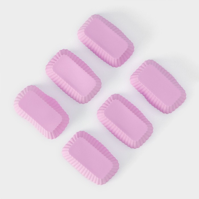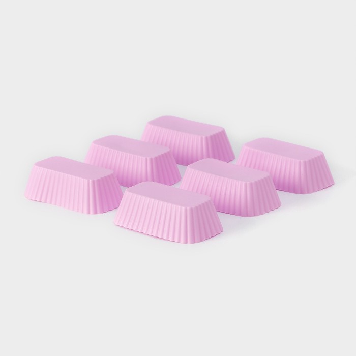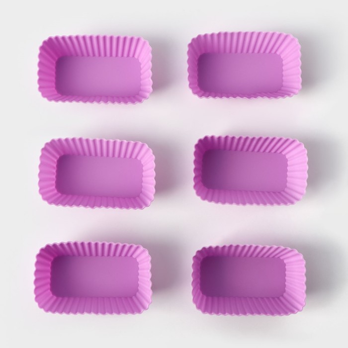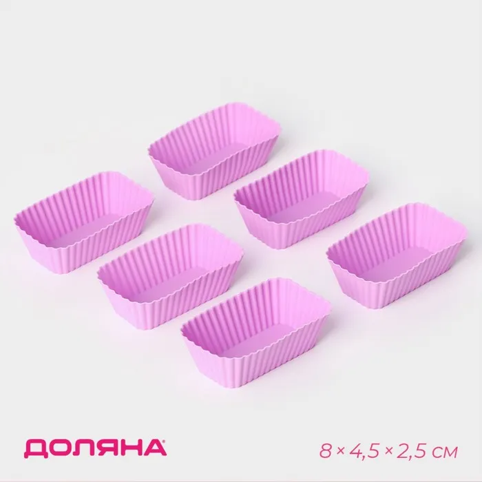 Формы для выпечки кексов Доляна «Риб. Прямоугольник», силикон, набор 6 шт, 8×4,5×2,5 см, сиреневые — Характеристики