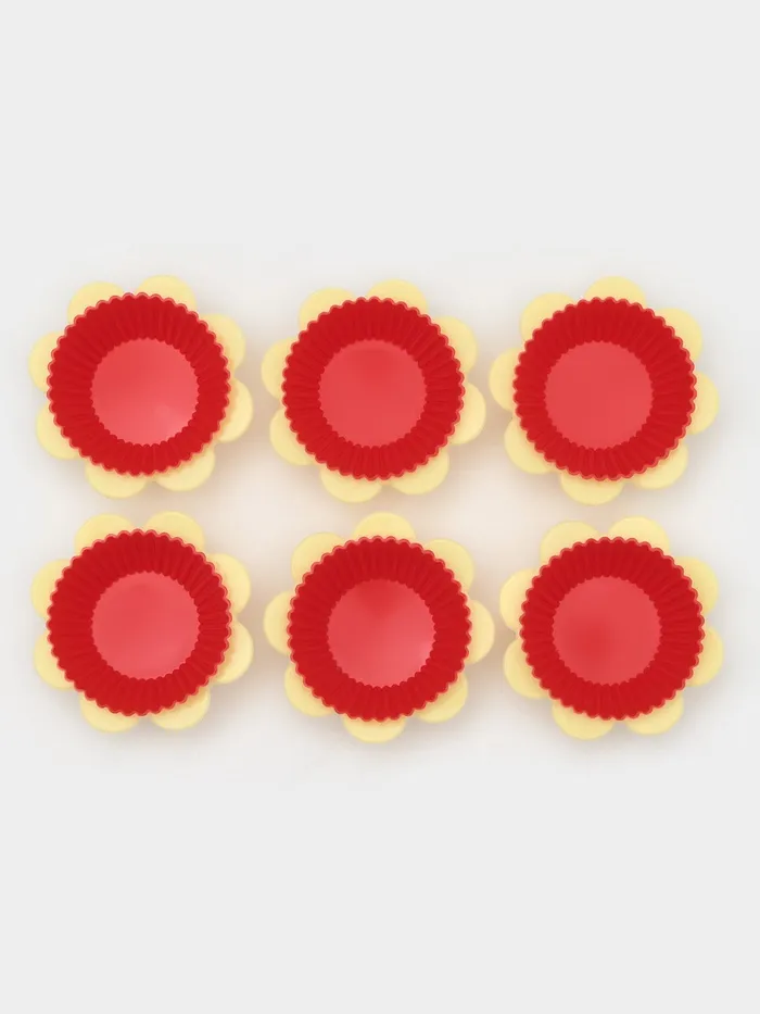 Формы для выпечки кексов Доляна «Риб. Ромашка», силикон, 9×3 см, набор 12 шт., жёлтые, красные — Характеристики
