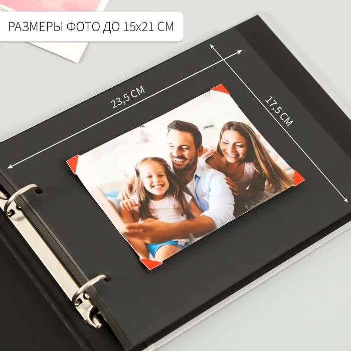 Фотоальбом на кольцах 30 листов «Счастье - каждый день», с уголками 102 шт., 27×19×2 см