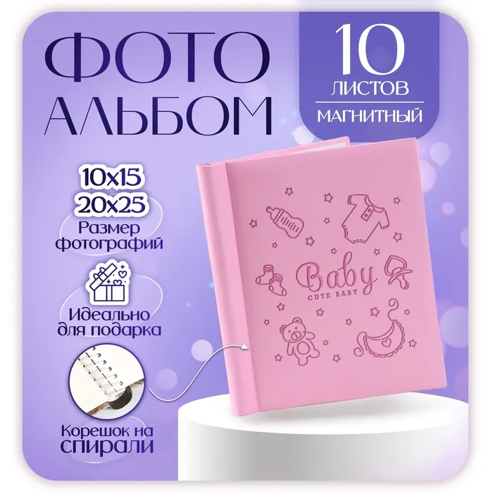Фотоальбом "Девочке" 10 "магнитных"листов 23X28см, пер-т внутр.спираль — Характеристики