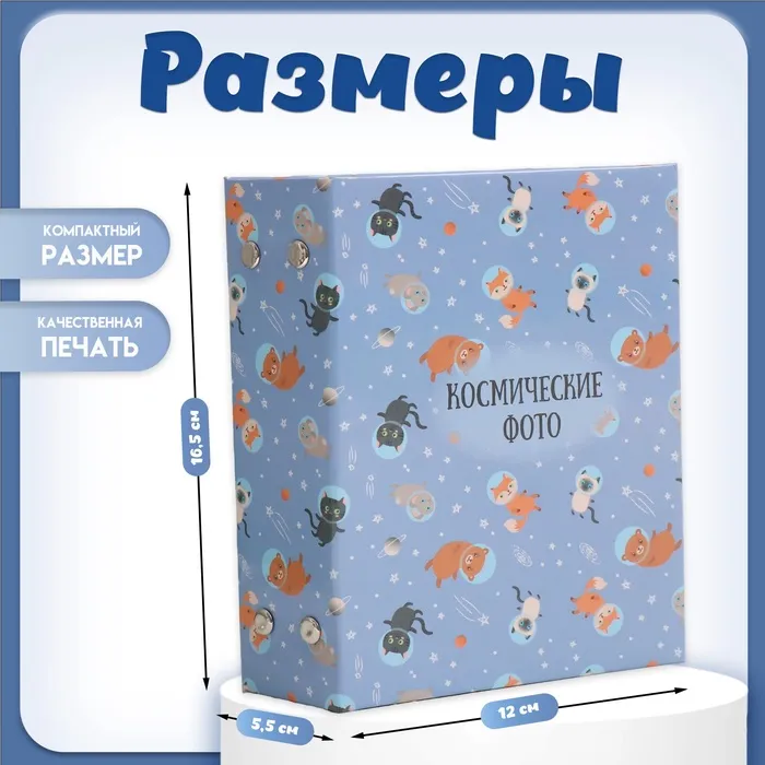 Фотоальбом для фотографий на 96 фото 10×15 см Keep memories «Зверята в открытом космосе», 16.5×12×5.5 см — Характеристики