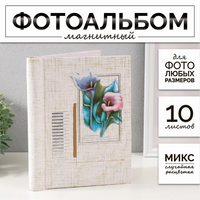 С таким фотоальбомом как этот не одна фотография не останется «без своего домика». Ведь фотоальбом магнитный 10 листов "Объёмный букет" МИКС 18х24,5 см станет не только приятным украшением Вашего интерьера, но и надежным хранилищем для каждой фотографии, вложенной в него. Такой фотоальбом имеет ряд преимуществ, ведь он магнитный! Фото можно размещать любого размера, в любом порядке и под разным уклоном, они не портятся, не мнутся и не прилипают к поверхности листа. Стоя на полке, этот альбом будет манить каждого, кто на него посмотрит, словно приговаривая: «Открой меня, пусть воспоминания окутают тебя своим теплом…». Так почему бы не перелистывать его вновь и вновь, ведь там таится гордость прожитых лет.
