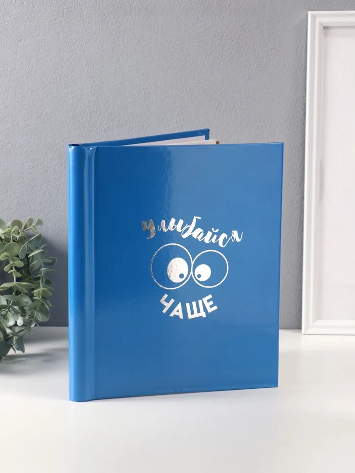 Фотоальбом магнитный 20 листов "Улыбайся чаще" голубой тиснение серебро 29х24х2 см