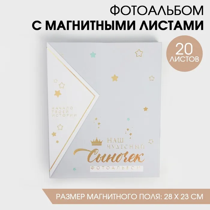 Фотоальбом магнитный на 20 листов для 80 фото «Наш чудесный сыночек», в подарочной коробке — Характеристики