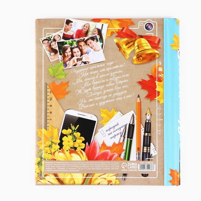 Фотоальбом магнитный на 20 листов для 80 фото «Наш класс» красив, удобен и прост в использовании. Изделие содержит толстые листы, которые сверху закрываются прозрачной плёнкой. Она плотно «примагничивается» к страничке и надёжно держит фотографию на месте. Такой способ размещения открывает перед вами неограниченные возможности для творчества. Сделайте коллаж, украсьте снимки декоративными элементами и надписями — воплощайте в жизнь самые интересные идеи! Каждый лист вмещает по 2 фотографии размером 10 х 15 см. Восхитительный дизайн изделия сделает его чудесным дополнением любого интерьера.