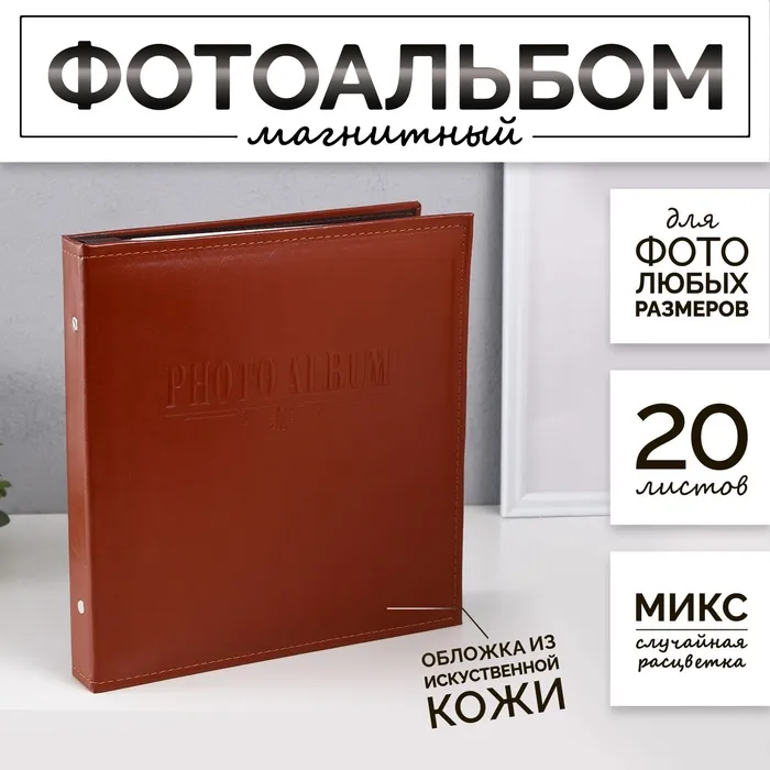 В магнитных фотоальбомах система крепления фотографий позволяет разместить на странице несколько снимков одного или разных форматов. В таких фотоальбомах отсутствуют кармашки для определенного формата фотографий, а вместо этого на страницах имеется закрепленная к краю клейкая прозрачная пленка, которая легко отлепляется от листа, на листе раскладываются фотографии, затем они накрываются пленкой и пленка разглаживается. Так Ваши снимки остаются защищенными от повреждения, а клейкая основа удерживает их на месте. Причем, менять фотографии в таких фотоальбомах можно не один раз, а неоднократно. Нам всегда так приятно вспоминать о самых счастливых моментах жизни, запечатленных на фотографиях. Поэтому фотоальбом является универсальным подарком к любому празднику. Вашим родным, близким и просто знакомым будет приятно помещать фотографии в этот альбом.