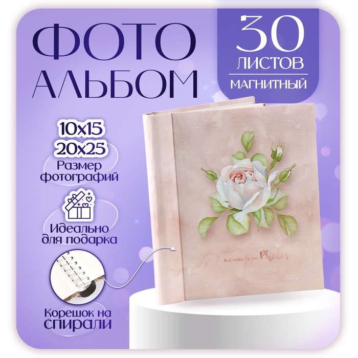 Фотоальбом магнитный на 20 листов «Серебряные цветы», кожзам, 5.5×35×33 см — Характеристики