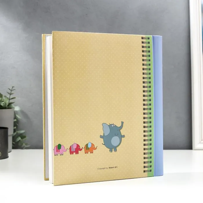 Погрузитесь в мир ярких воспоминаний с этим замечательным фотоальбомом, который станет идеальным местом для хранения детских фотографий. Обложка с милыми слониками не только радует глаз, но и создает атмосферу уюта и тепла, делая каждую страницу особенной.