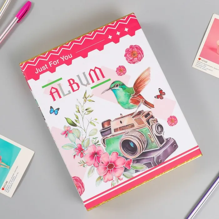 Фотоальбом на 100 фото 10х15 см "Камера и колибри" серебро, в коробке МИКС 5,5х20.8х26 см — Характеристики