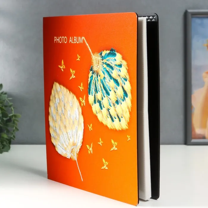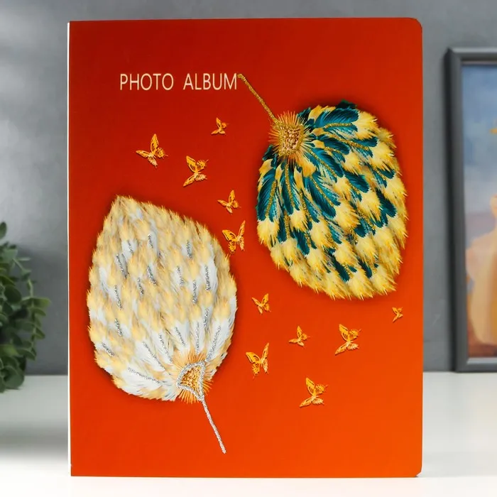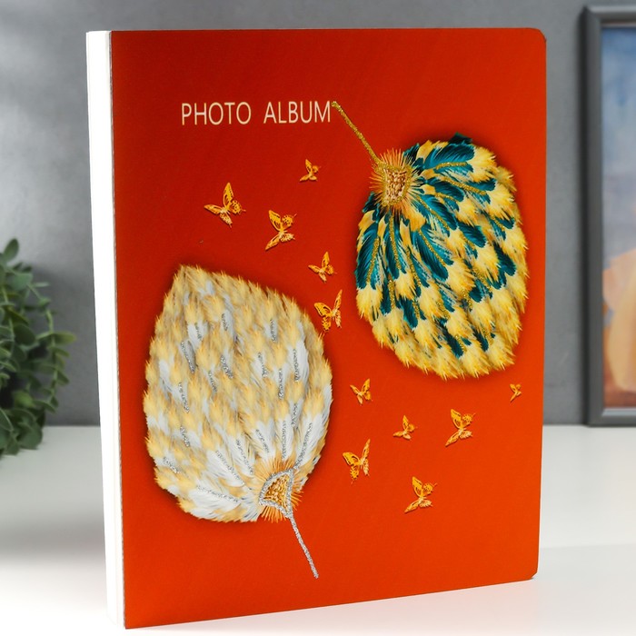 Фотоальбом на 100 фото 13×18 см «Опахало из перьев и бабочки», в коробке, дерево, 29.5×4×23 см — Характеристики