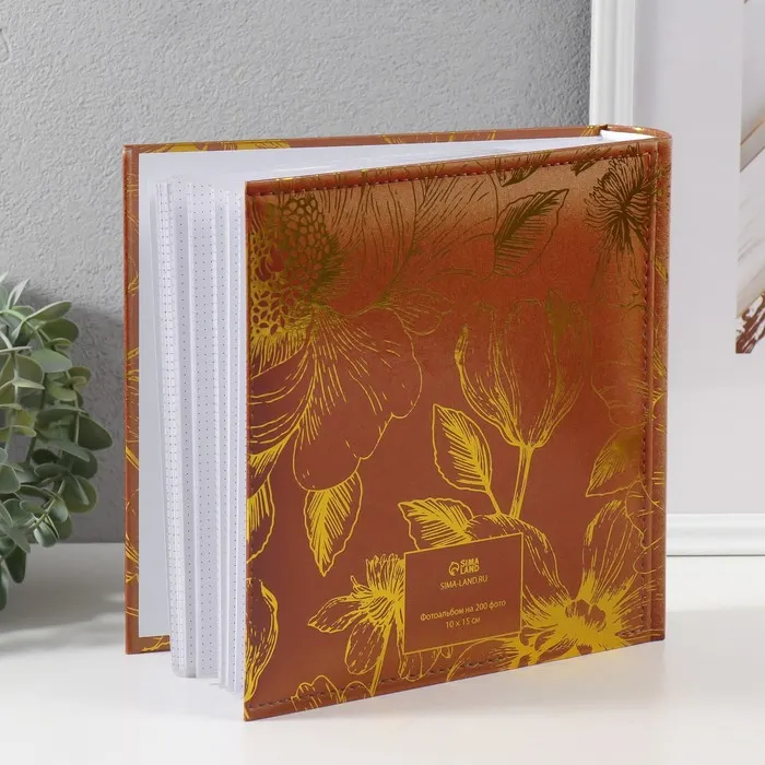 Фотоальбом на 200 фото 10х15 см "Цветы. Золото" тиснение, бумажн листы 22,4х20,8х5 см 101 — Характеристики