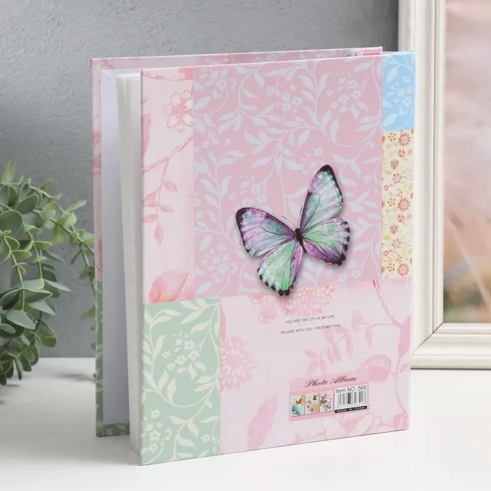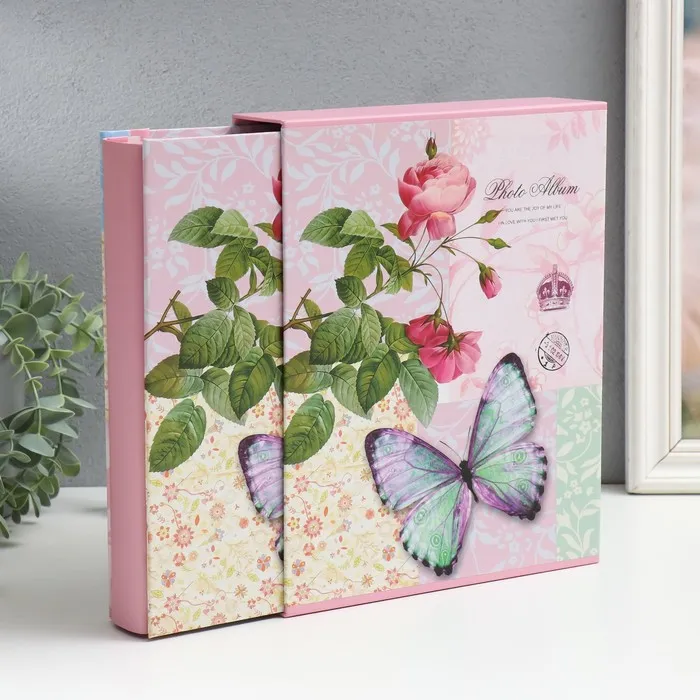 Фотоальбом на 200 фото 10×15 см «Бабочка на розовом» в коробке, 5×21×25.5 см — Характеристики