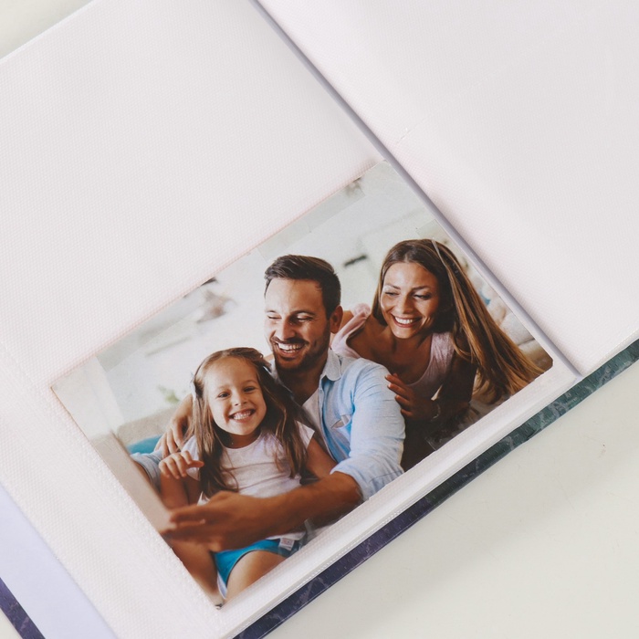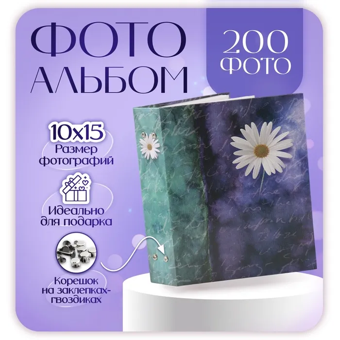 Фотоальбом на 200 фото 10×15 см «Цветочная коллекция. Сине-зелёный с белым цветком» — Характеристики
