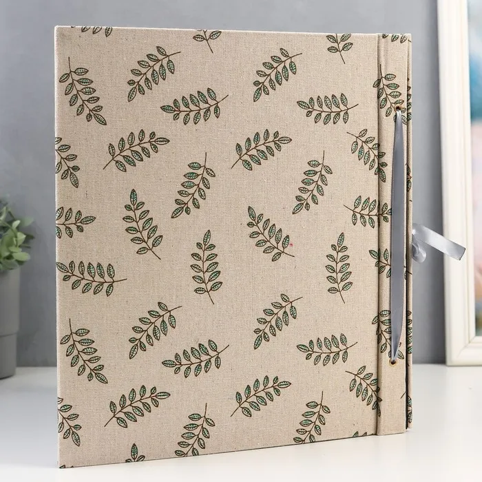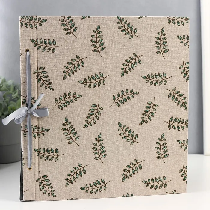 Фотоальбом на 200 фото 10×15 см «Зелёные веточки», текстиль, чёрные листы, 5×35×36 см, МИКС — Характеристики