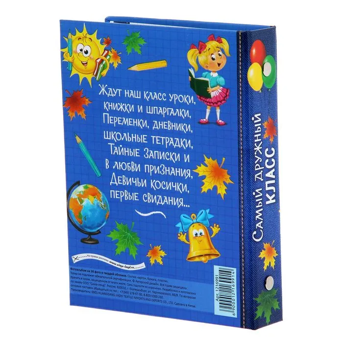 Фотографии — наши маленькие помощники в хранении воспоминаний. Чтобы снимки не тускнели и радовали вас год за годом, возьмите фотоальбом на 36 фото 10×15 см «Самый дружный класс». Он сохранит и структурирует фотографии, чтобы вы смогли в любой момент предаться ностальгии или показать их друзьям. Изделие рассчитано на 36 снимков размером 10 х 15 см. Благодаря внушительному объёму вы сохраните все необходимые фотокарточки в одном месте.