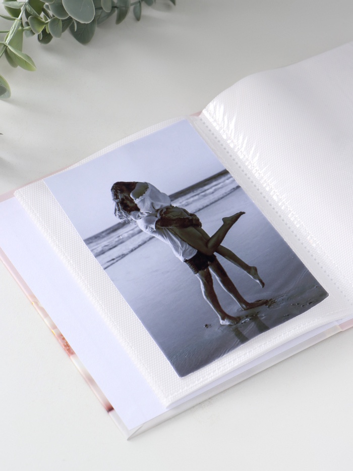 Компактные размеры альбома — всего 4,7×14×17 см — позволяют удобно хранить его дома или брать с собой в поездки. Пластиковые листы защищают фотографии от пыли и повреждений, сохраняя их яркость и чёткость на долгие годы.