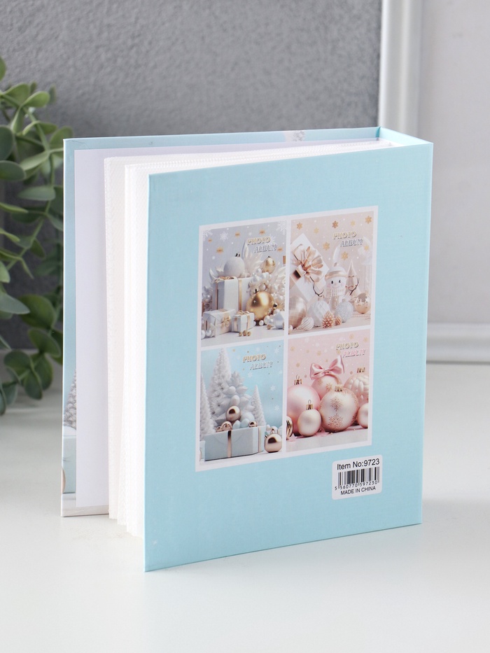 Альбом рассчитан на 40 фотографий формата 10×15 см. Его твёрдая картонная обложка украшена зимними мотивами, создающими ощущение приближающегося чуда. Пластиковые листы обеспечивают бережное хранение каждого снимка, защищая их от повреждений и пыли. Компактные размеры — 4.7×14×17 см — делают его удобным для размещения даже на самой маленькой полке или в дорожной сумке.