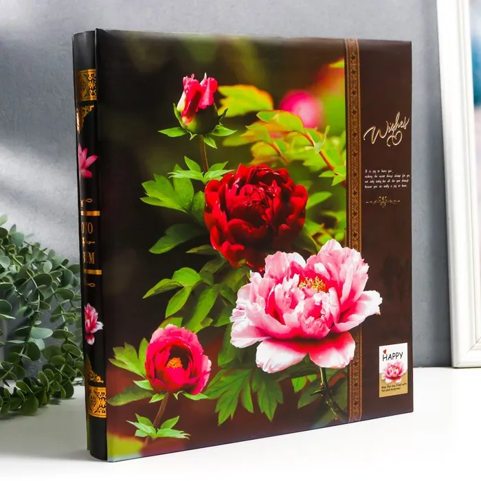Фотоальбом на 500 фото 10х15 см "Пионы" золот.обв,объем.эл, в коробке МИКС 33,5х30,5х5,7 см — Характеристики