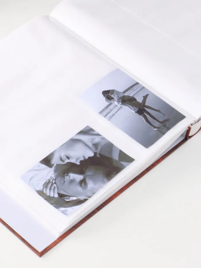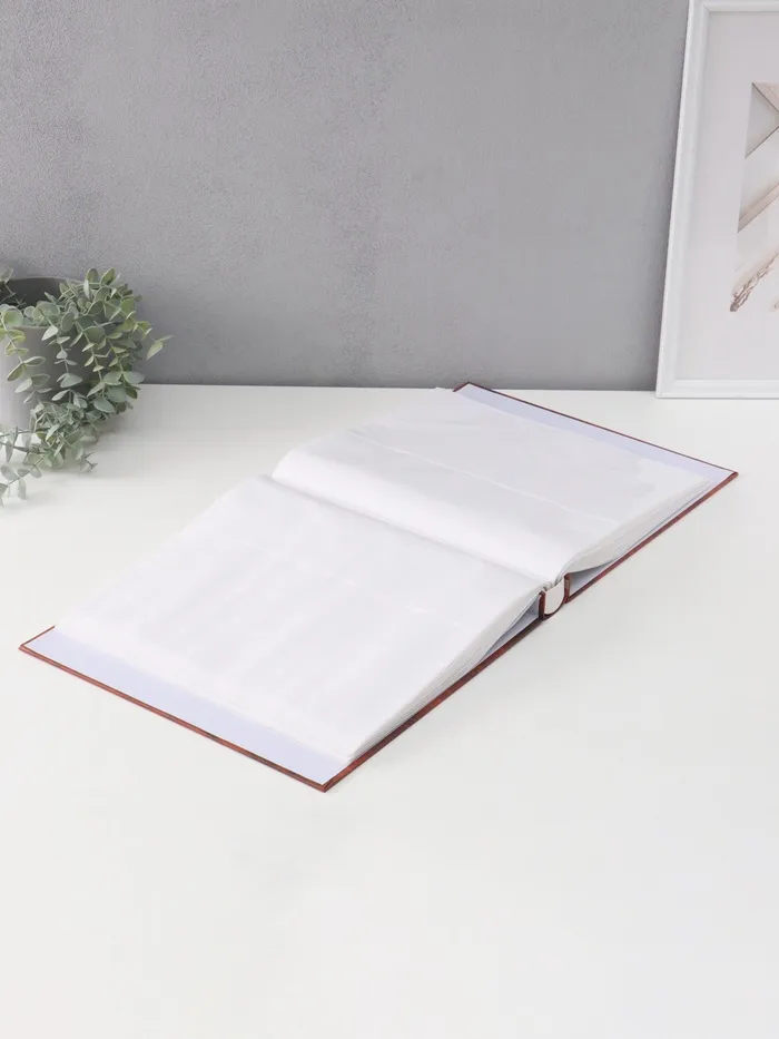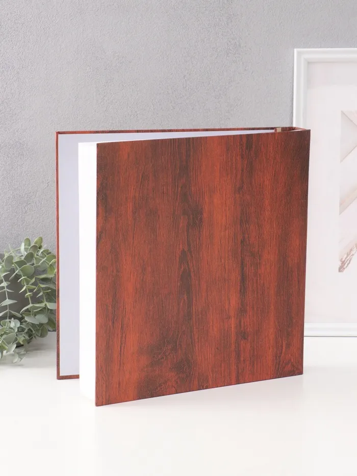 - Надёжная конструкция: твёрдая картонная обложка и белые пластиковые листы обеспечивают длительную сохранность ваших фотографий.