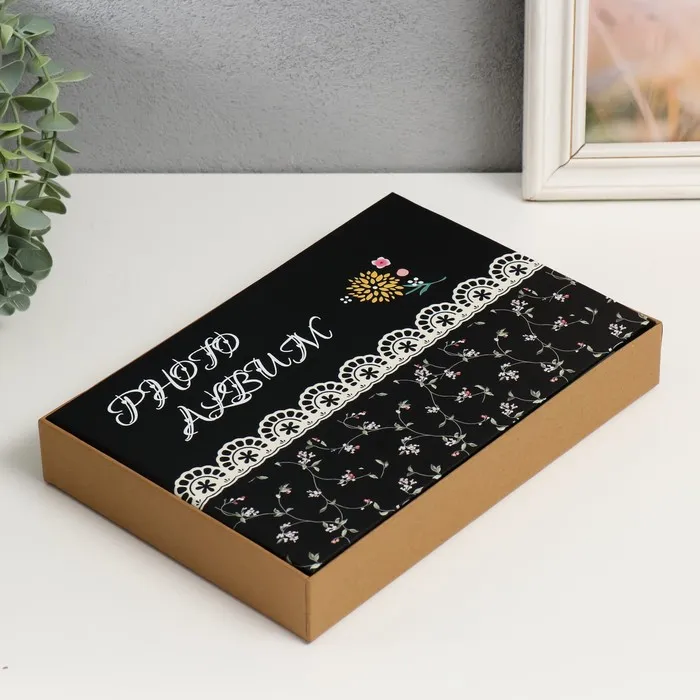 Фотоальбом на 52 фото 15х20 см "Цветочная вышивка на чёрном" кожзам 4х17,1х25,3 см — Характеристики
