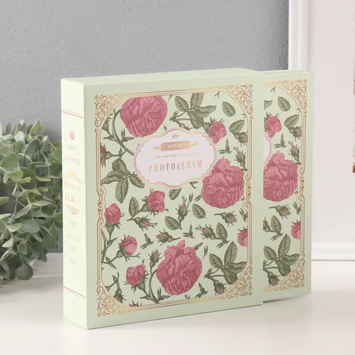 Фотоальбом на 80 фото 10х15 см "Цветочный прованс" в коробке зелёный 5х19х23 см — Характеристики