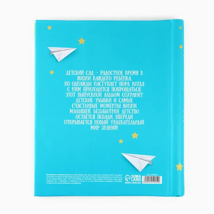 - Подходит как подарок: адресат — выпускник детского сада, поэтому альбом станет частью важного события и памятным аксессуаром на долгие годы.