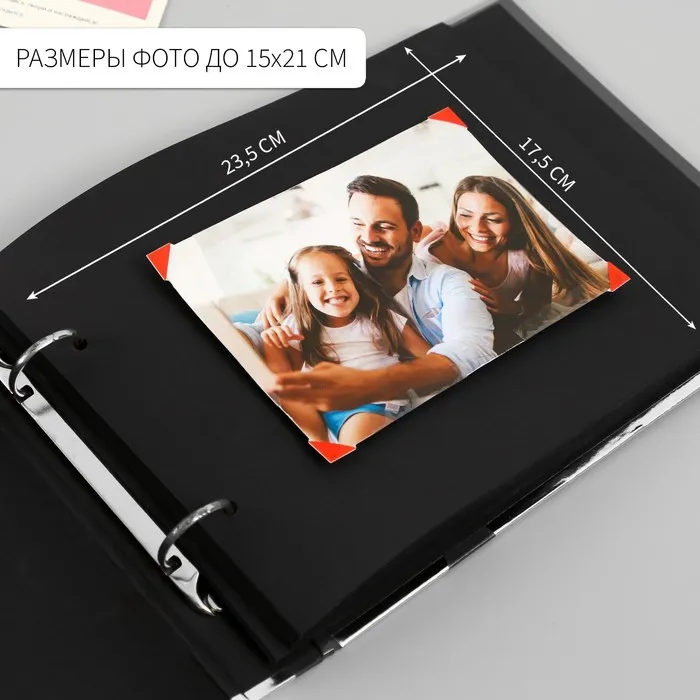 Фотоальбом на кольцах 30 листов «Счастье - каждый день», с уголками 102 шт., 27×19×2 см