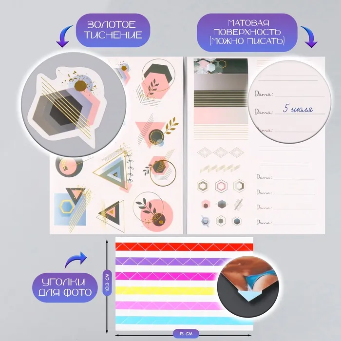 Фотоальбом на кольцах 25 листов Keep memories «Геометрия», с наклейками, тиснение золото, 19×27×3 см — Характеристики
