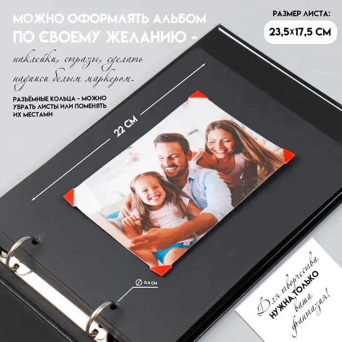 Фотоальбом на кольцах 30 листов «Счастье - каждый день», с уголками 102 шт., 27×19×2 см