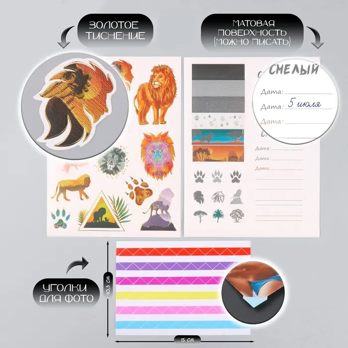 Фотоальбом на кольцах 25 листов Keep memories «Лев», с наклейками, 19×27×3 см — Характеристики