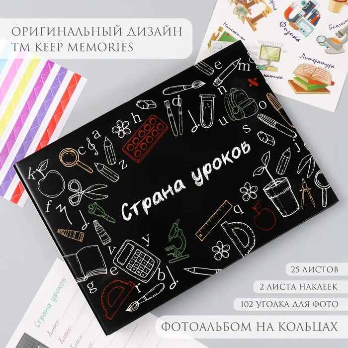 Фотоальбом на кольцах 25 листов Keep memories «Страна уроков», с наклейками, 19×27×3 см — Характеристики