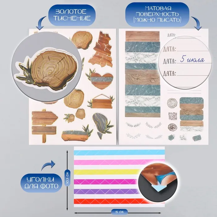 Фотоальбом на кольцах 25 листов Keep memories «Текстура дерево и камень», с наклейками, 19×27×3 см — Характеристики