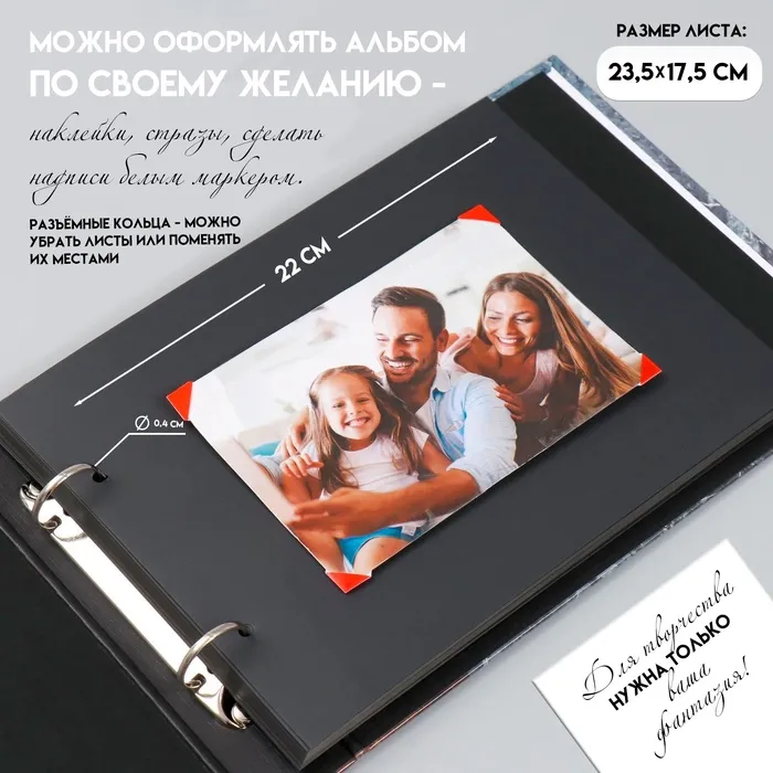 Фотоальбом на кольцах 30 листов «Счастье - каждый день», с уголками 102 шт., 27×19×2 см
