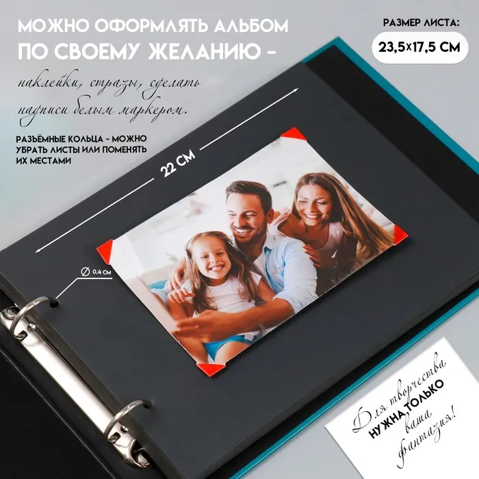 Фотоальбом на кольцах 30 листов «Счастье - каждый день», с уголками 102 шт., 27×19×2 см