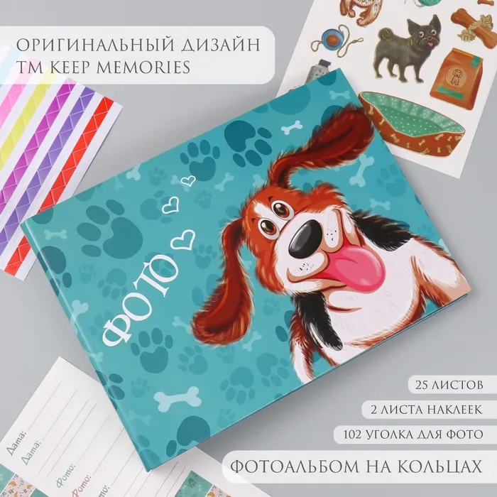 Фотоальбом на кольцах 25 листов Keep memories «Жизнерадостный пёс», с наклейками, 19×27×3 см — Характеристики