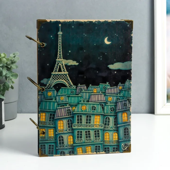 Фотоальбом на кольцах 30 листов "Ночной Париж" чёрные листы 26х18 см — Характеристики