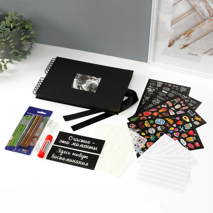Фотоальбом на кольцах Brauberg Black, размер 21×30 см, 40 чёрных листов — Характеристики