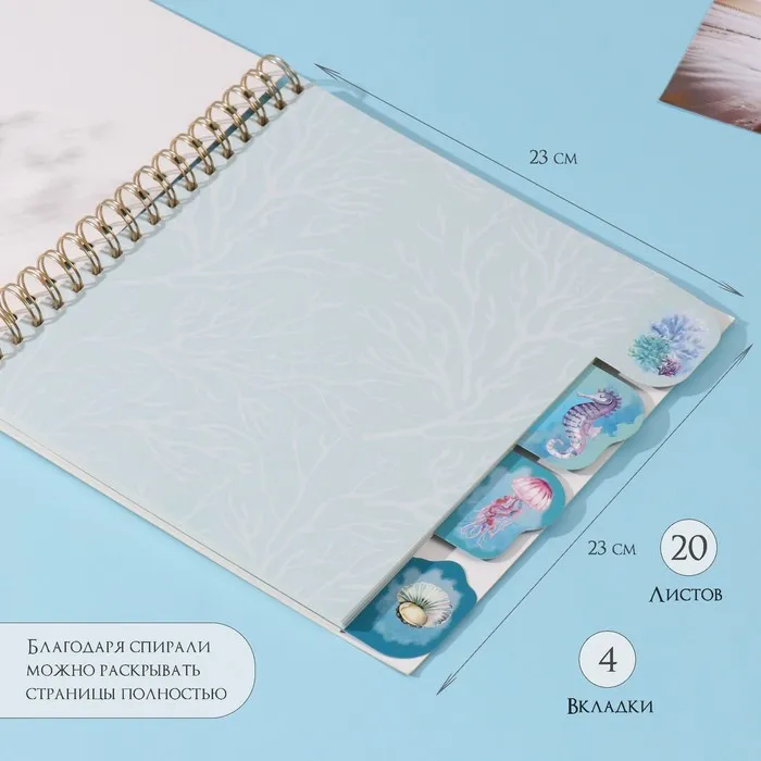 Фотоальбом на спирали 20 листов "Чайки" объёмный элемент + 4 вкладки 24х24 см — Характеристики